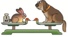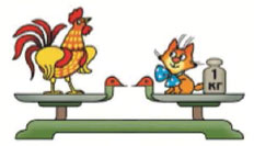 1. Рассмотри рисунки. Найди массу в килограммах котёнка, собаки и кролика, если масса петуха — 2 кг.