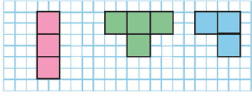 К розовой и голубой фигурам нужно добавить по 1 квадрату, чтобы во всех фигурах было по 4 квадрата.