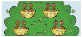 Птички свили на дереве 4 гнезда, в которых поселились 8 птичек. Сколько птичек в каждом гнезде?