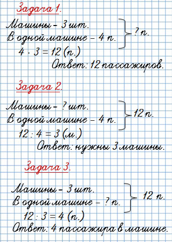 В 3 легковые машины-такси разместилось 12 пассажиров. Сколько пассажиров было в каждой машине?