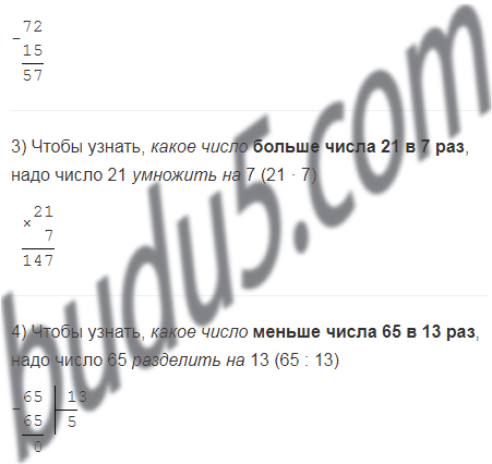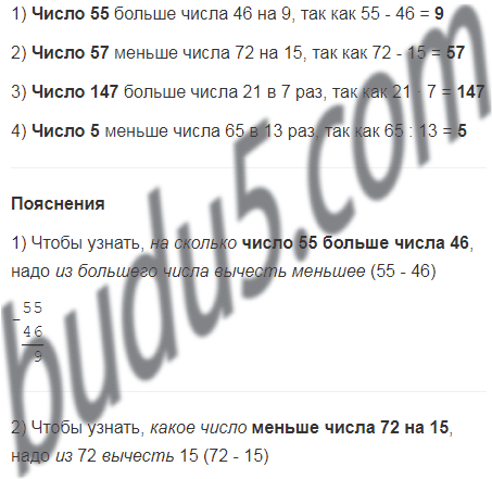 Какое число больше числа 46 на 9? Какое число меньше числа 72 на 15? Какое число больше числа 21 в 7 раз? Какое число меньше числа 65 в 13 раз?