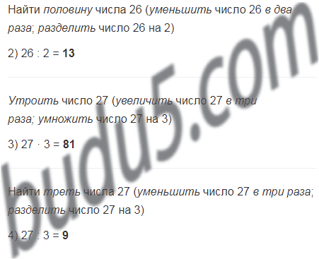 Удвойте число 26. Найдите половину числа 26. Утройте число 27. Найдите треть числа 27.