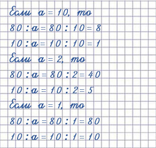 | а = 10 | 80 : 10 = 8 | 10 : 10 = 1 |