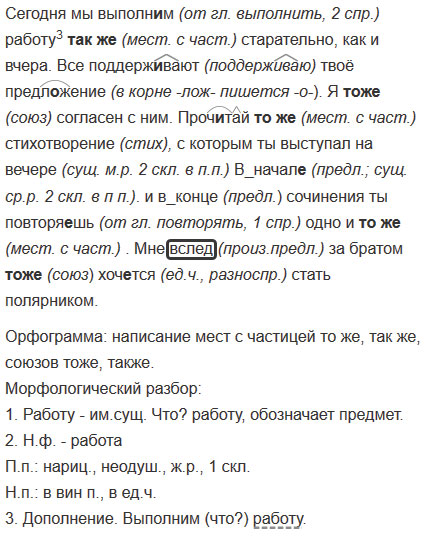 1. Сегодня мы выполи..м работу3 __ __ старательно, как и вчера. 2. Все поддерж..вают твоё предл..жение. Я __ __ согласен с ним. 3. Проч..тай __ __ ст..хотворение, с которым ты выступал на вечер... 4. (В)начал.. и (в)конце сочинения ты повторя..шь одно и __ __ . 5. Мне (в)след за братом __ __ хоч..тся стать программистом.
