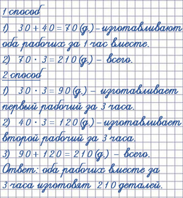 Первый рабочий работает на старом станке и за час изготавливает 30 деталей, а второй рабочий работает на новом станке и за час изготавливает 40 деталей. Сколько деталей изготовят оба рабочих вместе за 3 часа?