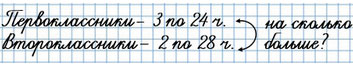 3. За неделю краеведческий музей посетили три первых класса, по 24 человека в каждом, и два вторых класса, по 28 человек в каждом. На сколько больше было на этой неделе в музее первоклассников, чем второклассников?