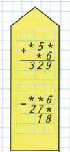 Пишу (единицы под единицами, десятки под десятками, сотни под сотнями): 534 + 27.