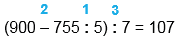 (900 - 755 : 5) : 7 = 107