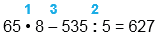 | 65 • 8 - 535 : 5 = 627 | ||||||||||||||