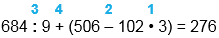 | 684 : 9 + (506 - 102 • 3) = 276 | |||||||||||||||