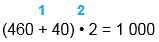 1) 460 + 40 = 500 2) 500 • 2 = 1 000 |