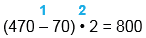 1) 470 - 70 = 400 2) 400 • 2 = 800 |
