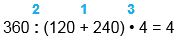 360 : (120 + 240) • 4 = 4