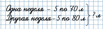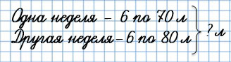 1) 80 + 70 = 150 (л) - молока израсходовали за 1 день одной недели и 1 день другой недели.