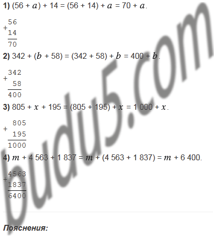 1) (56 + ) + 14; 3) 805 + + 195;