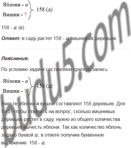 В саду растет 158 деревьев, из них деревьев составляют яблони, а остальные - вишни. Сколько вишневых деревьев растет в саду?