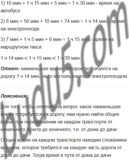 От дома до дачи можно доехать на автобусе, или на электропоезде, или на маршрутном такси. В таблице указано время, которое надо затратить на каждый участок пути. Какой наименьшее время потребуется на дорогу? Каким видом транспорта надо воспользоваться?