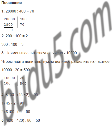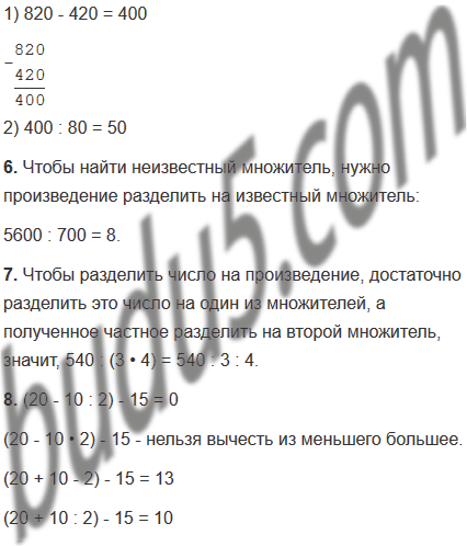 | 5. Укажи частное от деления разности чисел 820 и 420 на 80. | 50 400 5 |