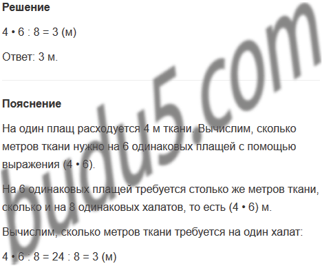 24. На 8 одинаковых халатов требуется столько же метров ткани, сколько на 6 одинаковых плащей. На один плащ расходуется 4 м ткани. Сколько метров ткани требуется на один халат?