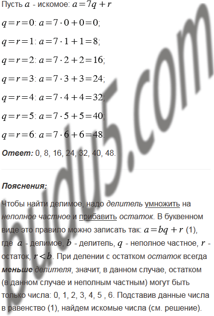 Найдите все натуральные числа, при делении которых на 7 неполное частное будет равно остатку.