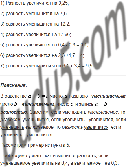 5) уменьшаемое увеличить на 0,4, а вычитаемое - на 0,3;