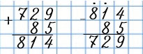 Вычисли и проверь: 729 + 85, 583 - 94.