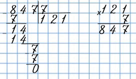 Пишу (единицы под единицами, десятки под десятками, сотни под сотнями): 121 • 7.