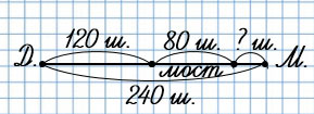 4. Если идти по прямой, то от дома до моста 120 шагов, длина моста 80 шагов, а от дома до магазина 240 шагов.