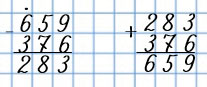 Пишу (единицы под единицами, десятки под десятками, сотни под сотнями): 659 - 376.