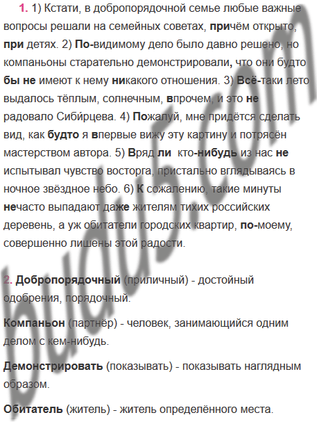 (при)детях. 2) (По)видимому дело было давно решено но компаньоны старательно демонстрировали что они будто(бы) (не)имеют к нему (ни)какого отношения. 3) (Всё)таки лето выдалось тёплым, солнечным (в)прочем и это (не)радовало Сибйрцева. 4) (По)жалуй мне придётся сделать вид как (будто) я (в)первые вижу эту картину и потрясён мастерством автора. 5) (В)ряд(ли) кто(нибудь) из нас (не)испытывал чувство восторга пристально вглядываясь в ночное звёздное небо. 6) (К)сожалению такие минуты (не)часто выпадают да(же) жителям тихих российских деревень а уж обитатели городских квартир (по)моему совершенно лишены этой радости.