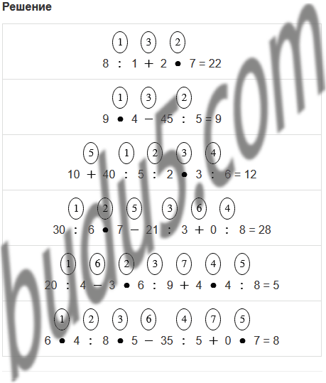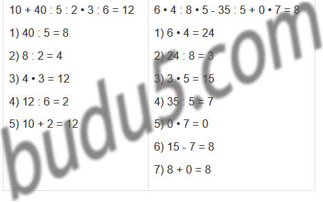 | 8 : 1 + 2 • 7 | 30 : 6 • 7 - 21 : 3 + 0 : 8 |