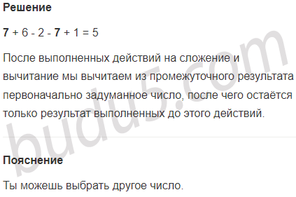 Задумай число, прибавь к нему 6, из сумму вычти 2, затем вычти задуманное число и к результату прибавь 1. Получится 5. Отгадай, почему так получается?
