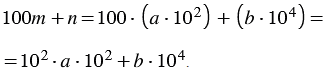 Учитывая свойство умножения степеней с одинаковыми основаниями, 102102 = 102+2 = 104, получаем следующее выражение: