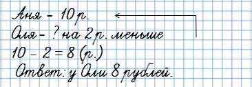 У Ани было 10 рублей, а у Оли на 2 рубля меньше.